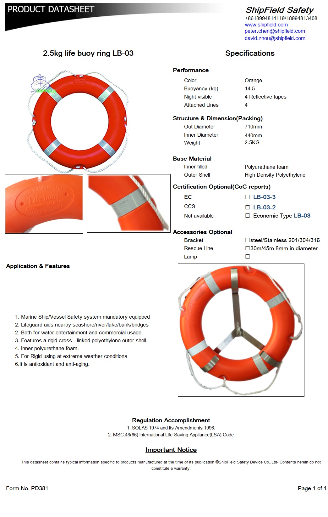 3) In according with SOLAS 1974/1996, the international life-saving appliance code, and MSC.81 (70)