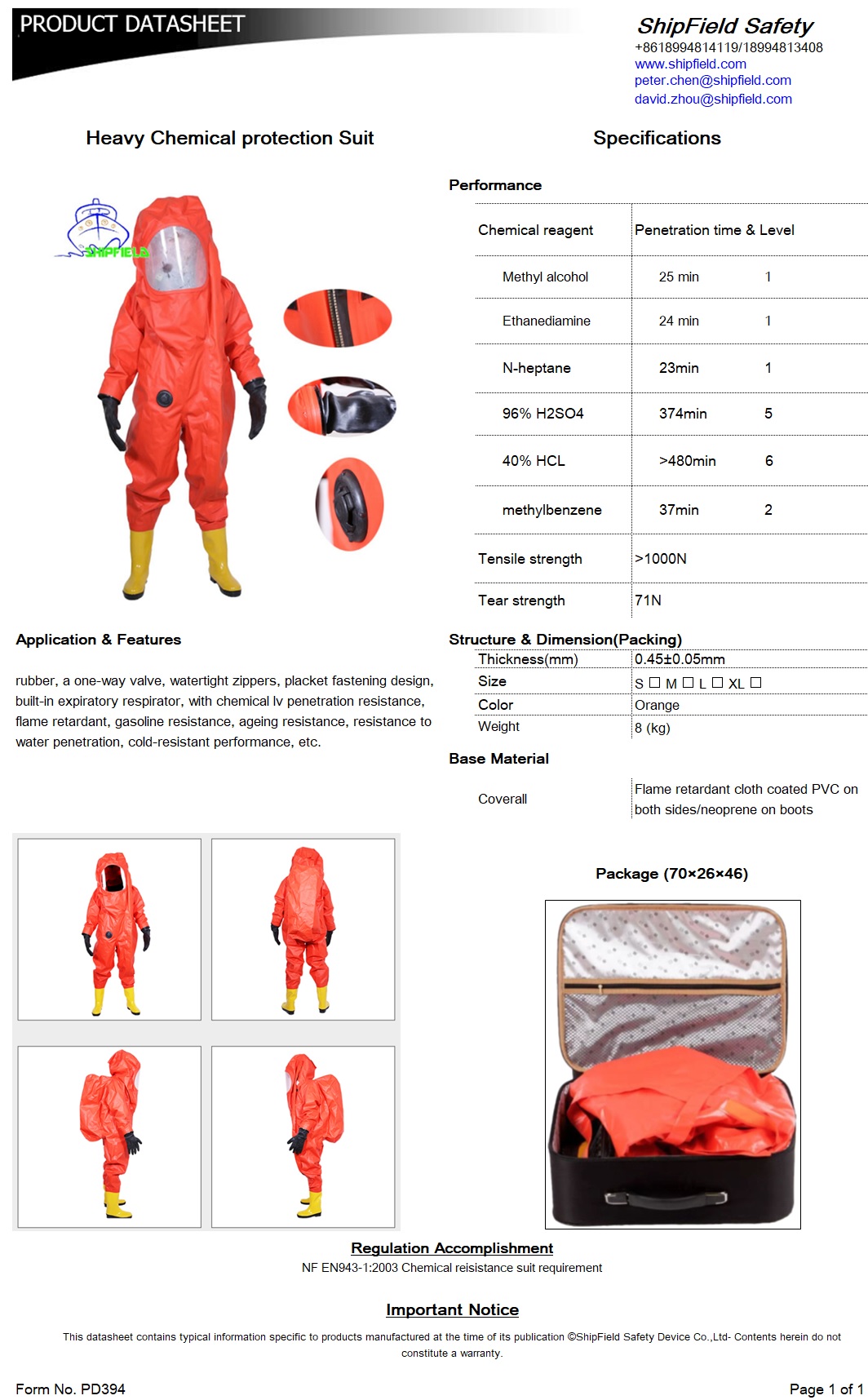 Totally enclosed anti-chemical suits, chemical protective clothing is a fire a fire, rescue personnel, and special work of the industry to gain access to dangerous chemicals and corrosive substances in place for fire fighting, rescue, operation, wearing protective clothing. Air respirator with a license to be supporting the use of Jiang Bo.