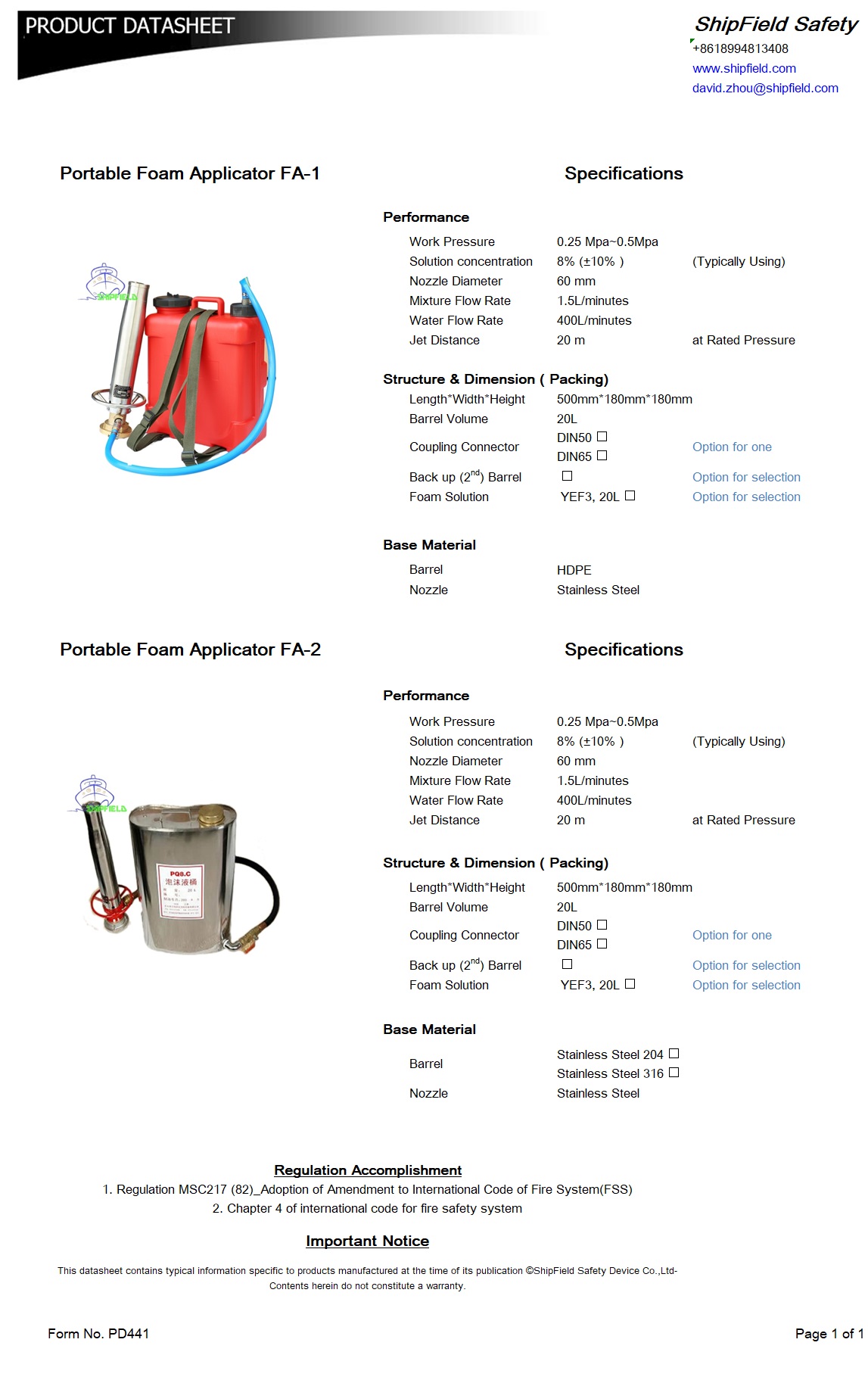 Product DescriptionThe Brand Portable Foam Applicator Unit acts as a supplement to the foam monitors.This unit provides high level of flexibility for extinguishing fire in the Marine & Offshore environment in sheltered areas where the reach of…